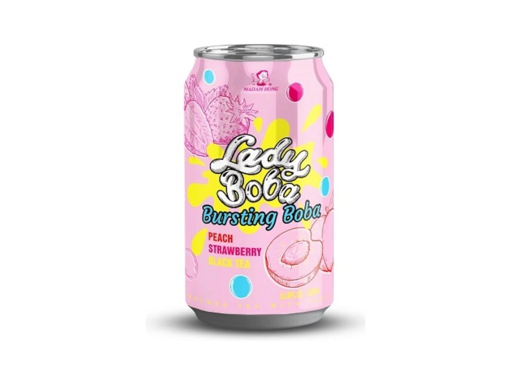Složení: vařený černý čaj (voda, listy černého čaje 0,5%), třtinový cukr, praskající kuličky 8% (voda, jahodový džus z koncentrátu, regulátor kyselosti E270 kyselina mléčná, zahušťovadla E401, E415, tapiokový škrob, regulátor kyselosti E296, barvivo: E160d, broskvový džus 1%, jablečný džus z koncentrátu 1%, jahodový džus z koncentrátu 0,3%, regulátor kyselosti E296 kyselina jablečná, příchuť.