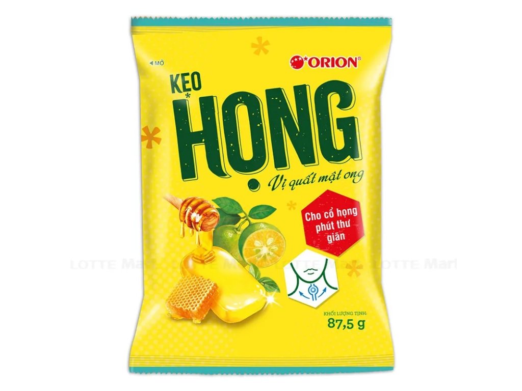 Složení: cukr, sladový sirup, přírodní aroma (kumquat, máta, med), citron, med, regulátor kyselosti: E270, kumquatová šťáva, zázvorový sirup, sladidlo: E955, barvivo: E160a. Může obsahovat stopy MLÉKA a OŘECHŮ.